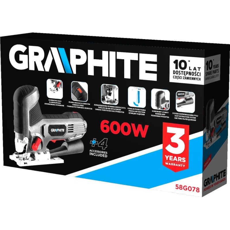 Wyrzynarka Graphite Wyrzynarka (Wyrzynarka 600W, ilość suwów 800-3000 min-1, z uchwytem za korpus)