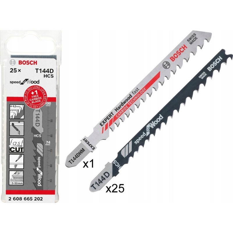 Bosch Professional 25x T 144 D + 1x Expert Hardwood Fast T 144 DHM jigsaw blade (for wood, hardwood, jigsaw accessories)