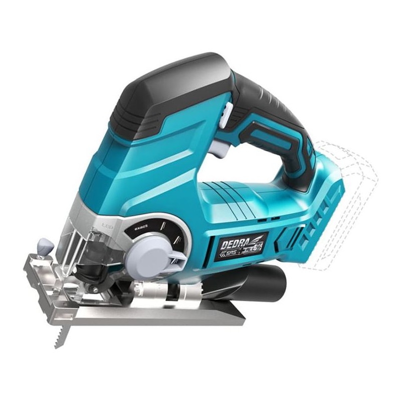 Wyrzynarka Dedra poradzi sobie zarówno z drewnem, jak i ze stalą czy aluminium. Tnie precyzyjnie oraz zgrubnie. Narzędzie ma duży zapas mocy i wysoką efektywność, wszelkie testy zdaje na piątkę z plusem. Po pracy zostawia czysto przycięte krawędzie bez żadnych zadziorów. Wyrzynarka jest częścią zespołu SAS + ALL. Zespół do zadań specjalnych z jednym szefem kompatybilnym z zespołem akumulatorem. Czyli krótko mówiąc wyrzynarka jest w wersji body ( stąd taka atrakcyjna cena) i pasuje do akumulatora uniwersalnego Dedra. A co ma w sobie to narzędzie, że jest chętnie kupowane? To 3-stopniowy mechanizm z wysokim skokiem brzeszczotu do podcinania, podrzynania i wyrzynania, który wprawia brzeszczot w ruch elipsoidalny dający cięcie niezwykle precyzyjne.