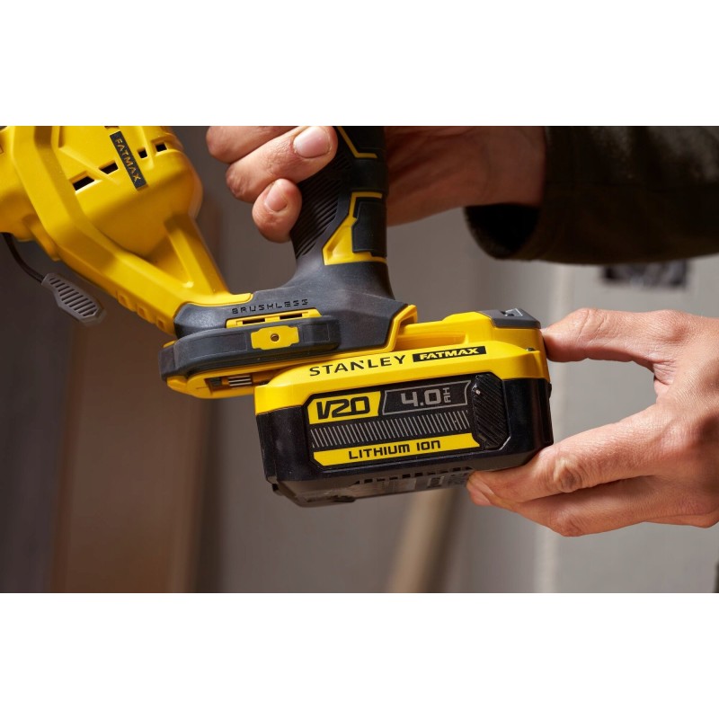 - Dodatkowe informacje: zalecany akumulator 18V STANLEY FATMAX V20 2.0 lub 4.0Ah (dostarczany oddzielnie)