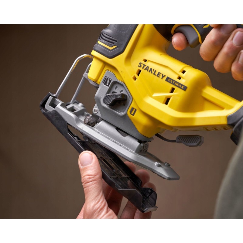 Wyrzynarka Stanley FATMAX SFMCS650B umożliwia beznarzędziową wymianę brzeszczotów, co znacznie przyspiesza proces przygotowania narzędzia do pracy. Dzięki temu możesz szybko dostosować się do zmieniających się wymagań projektowych.