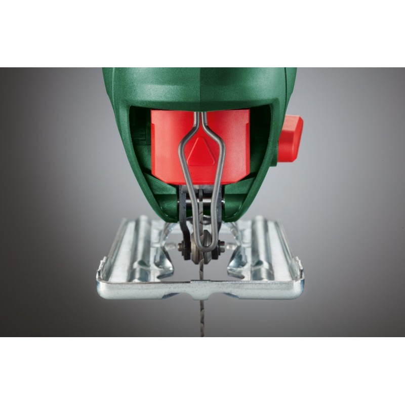 Każdy kocha w swoim mieszkaniu lub miejscu pracy zachowywać pełen szyk i organizację, prawda? Z pomocą przychodzi system odciągu pyłu, który pozwoli Ci na odprowadzenie wiórów i opiłków generowanych podczas cięcia. Dzięki takiemu rozwiązaniu jesteś w stanie zachować pełen ład i porządek w swoim otoczeniu. Wyrzynarka może być wyposażona we własną dmuchawę lub działać z osobnym odkurzaczem. Poprzez usunięcie ścinków i drobinek uzyskujesz lepszy widok na miejsce wykonywania cięcia.