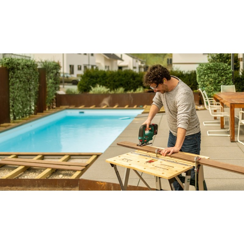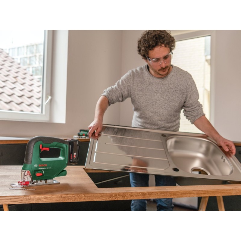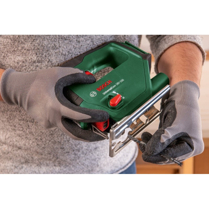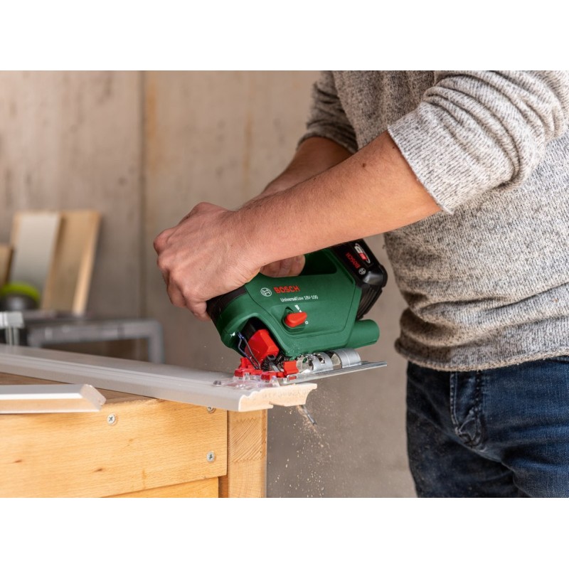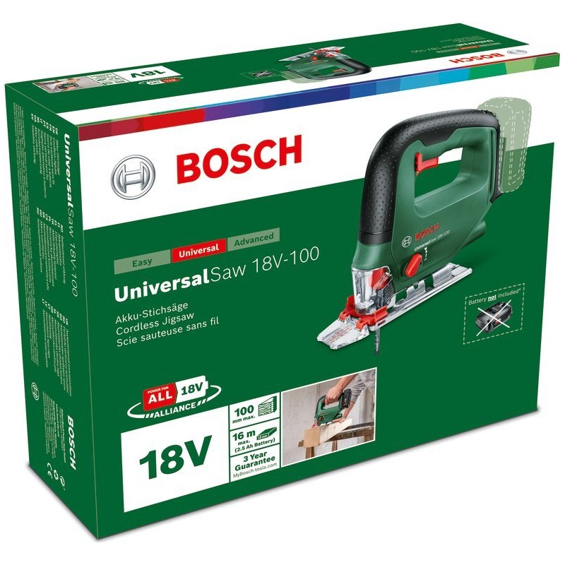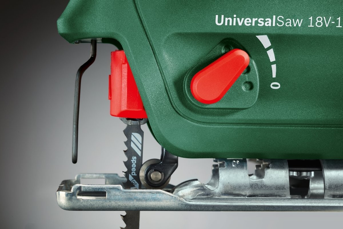 Akumulatorowy model UniversalSaw 18V-100 jest przeznaczony do najróżniejszych prac związanych z cięciem – można go używać m.in. do cięcia parkietu lub półek. Umożliwia cięcie do głębokości 100 mm w drewnie oraz do 8 mm w stali i jest dostępny wraz z asortymentem praktycznych akcesoriów. Wyrzynarka oferuje wysoką jakość pracy dzięki 4-stopniowej oscylacji brzeszczotu, która wspomaga pracę brzeszczotu i umożliwia cięcie nawet najtwardszych materiałów. Zaawansowani i początkujący majsterkowicze docenią komfortową funkcję łagodnego rozruchu i możliwość dopasowania mocy za pomocą włącznika z regulacją prędkości, a także łatwość wymiany brzeszczotów. Narzędzie jest częścią POWER FOR ALL ALLIANCE. Jeden akumulator może być wykorzystywany do zasilania wielu narzędzi różnych marek.