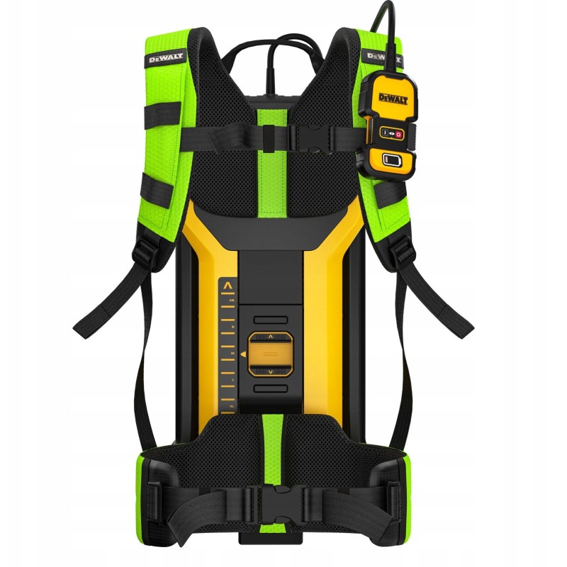 Wibrator plecakowy DeWalt wyróżnia się w pełni regulowaną uprzężą, co zapewnia idealne dopasowanie do użytkownika. Elementy sterujące można zamontować po dowolnej stronie uprzęży, co zwiększa elastyczność i komfort użytkowania. Zintegrowana klatka ułatwia chwyt urządzenia z różnych kierunków, a także chroni akumulator, co zwiększa jego odporność na trudne warunki pracy.