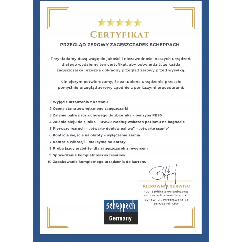Przed pierwszym użyciem, zagęszczarka przechodzi przegląd zerowy, który obejmuje ocenę stanu zewnętrznego, zalanie paliwa oraz oleju, a także kontrolę obrotów i wibracji. Dzięki temu użytkownik ma pewność, że urządzenie jest w pełni sprawne i gotowe do działania.
