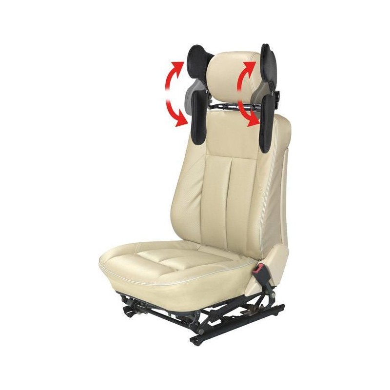 Boczne poduszki są wygodnie montowane na fabrycznych zagłówkach samochodu. Można regulować ich wysokość, by dopasować je do wzrostu zarówno dzieci, jak i dorosłych. Kiedy nie są potrzebne, wystarczy unieść je do góry. Regulowany zagłówek można zamontować na przednich i tylnych siedzeniach pasażerów.