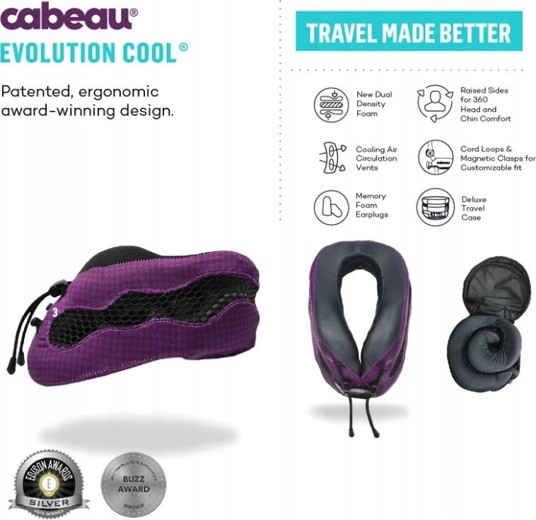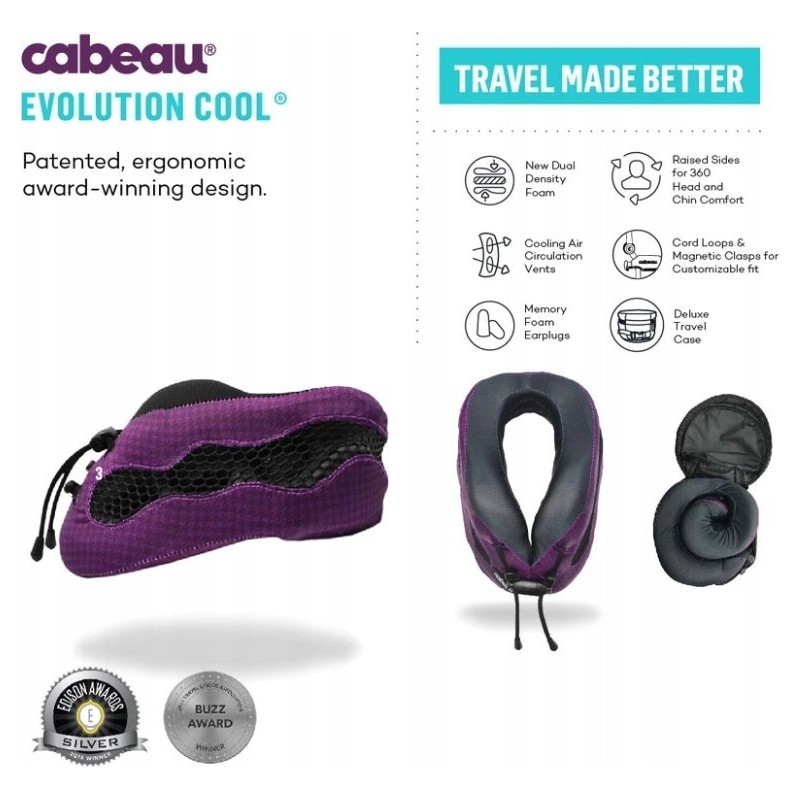 Poduszka podróżna Cabeau Evolution Cool® to flagowy produkt firmy Cabeau. Jest to doskonałe połączenie komfortu i zaawansowanych rozwiązań. Powstała na podstawie opinii klientów, którzy podzielili się swoimi doświadczeniami z podróży. Dlatego ta poduszka gwarantuje niezapomniane wrażenia z podróży.