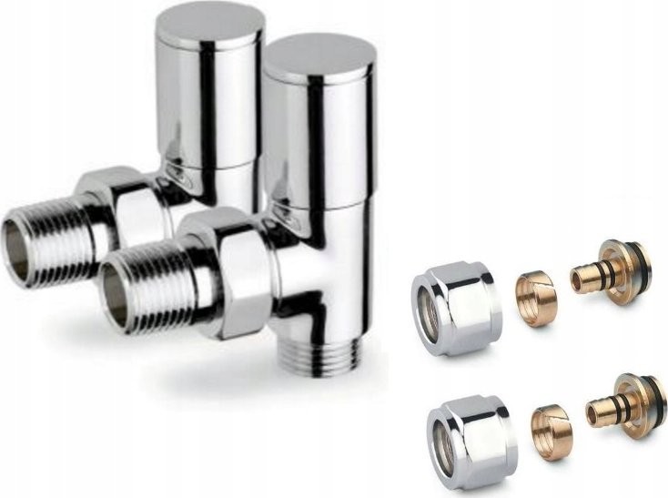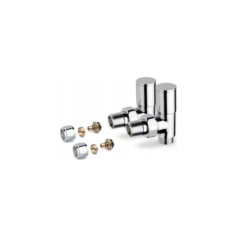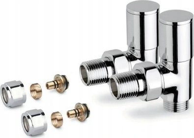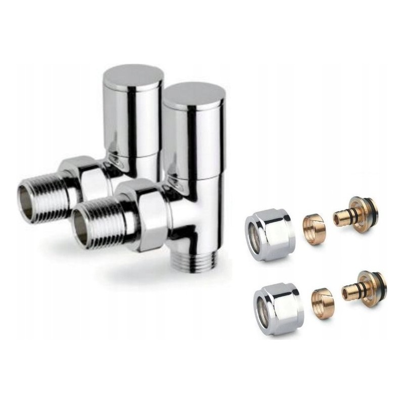 Zestaw zaworów grzejnikowych kątowe osiowe APM CHROM +złączki pex 16x2x1/2"
