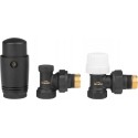 Ekskluzywny czarny komplet termostatyczny przeznaczony jest do podłączenia kątowego grzejnika dekoracyjnego (bocznie).