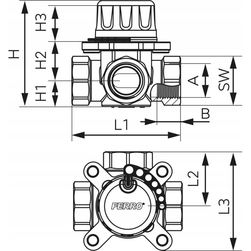 Ferro Zawór mieszający 3-drogowy 1" GW (ZMV32)