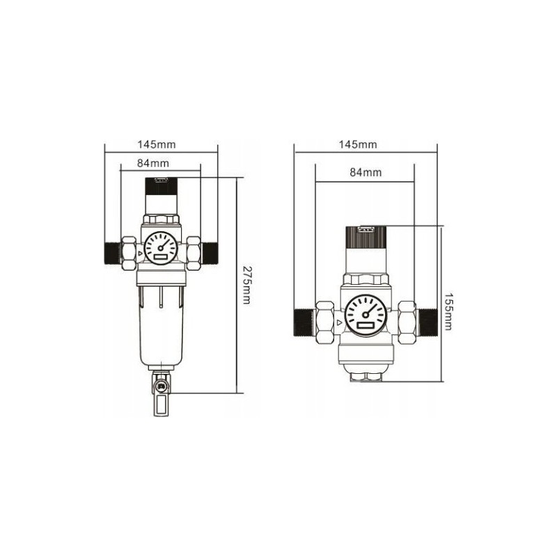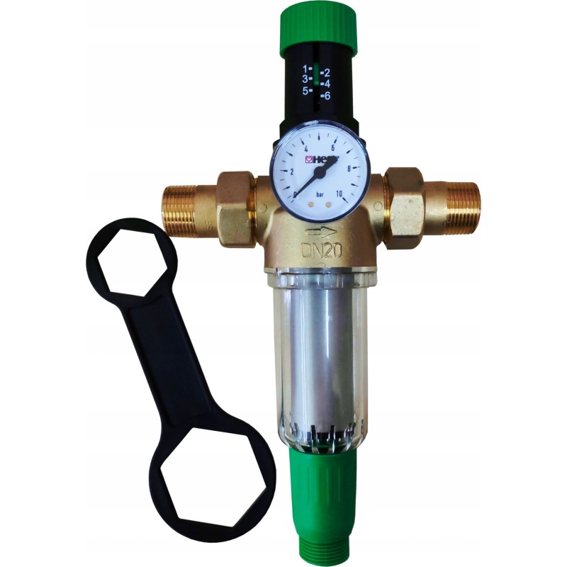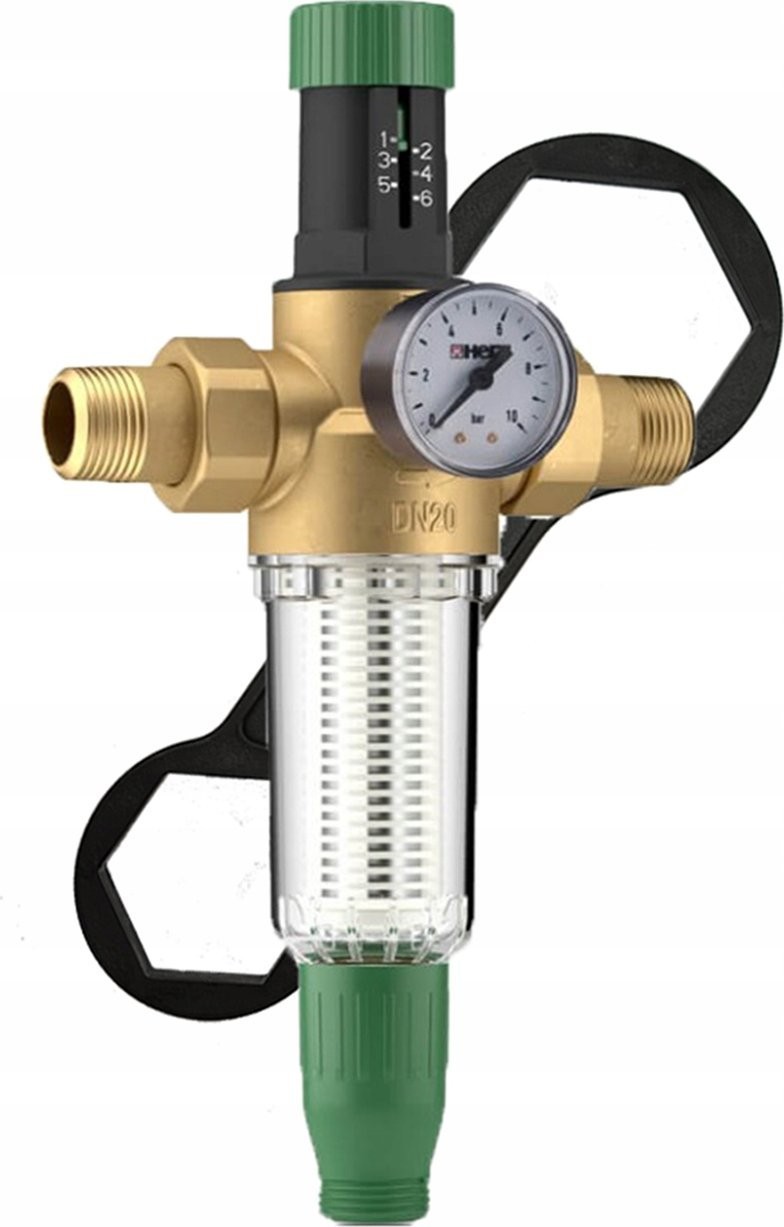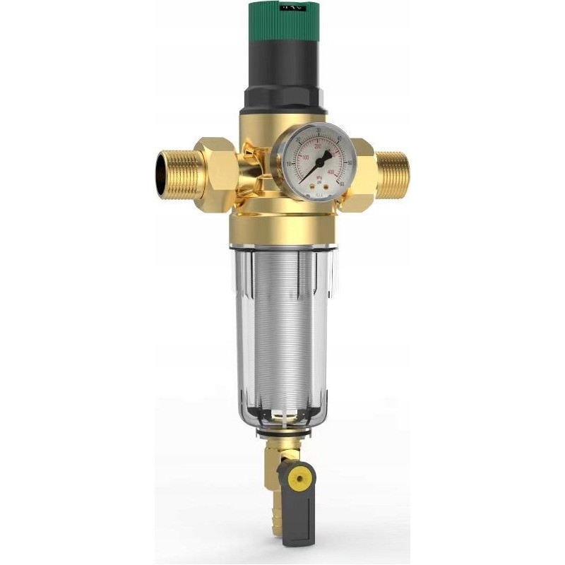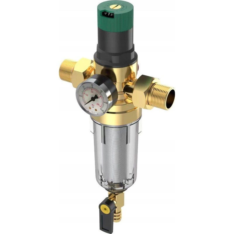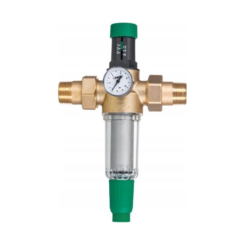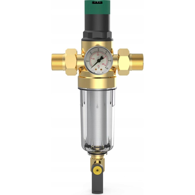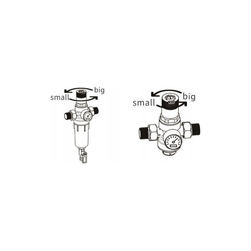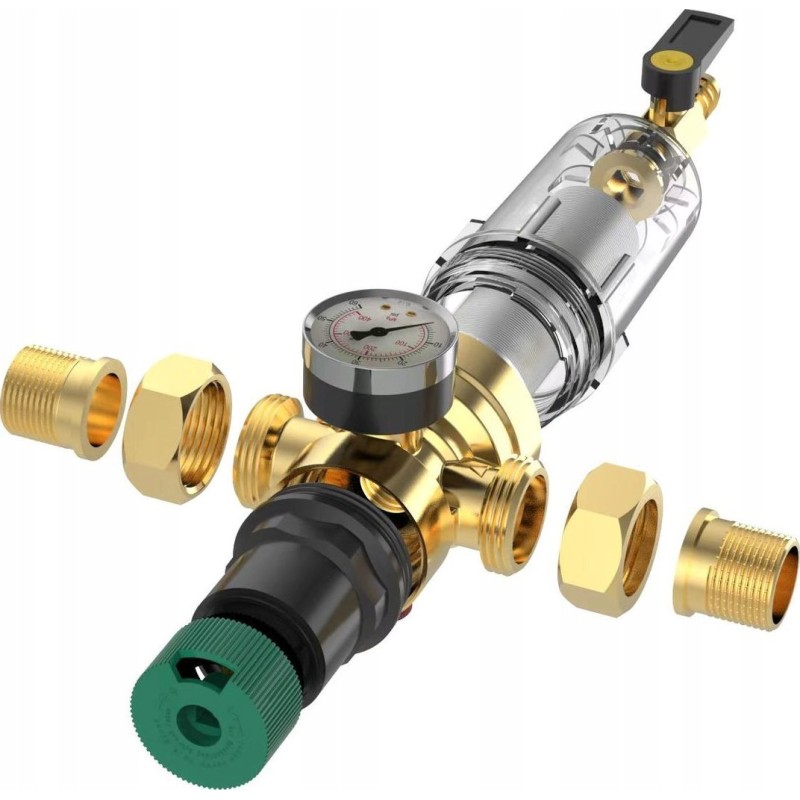 - Reduktor ciśnienia z filtrem chroni instalacje wody pitnej przed nadmiernym ciśnieniem (zmniejsza ciśnienie wejściowe do poziomu roboczego),
