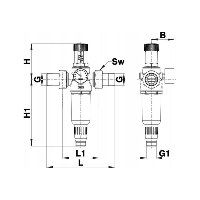 Filtr HERZ do zimnej wody z reduktorem ciśnienia DN20