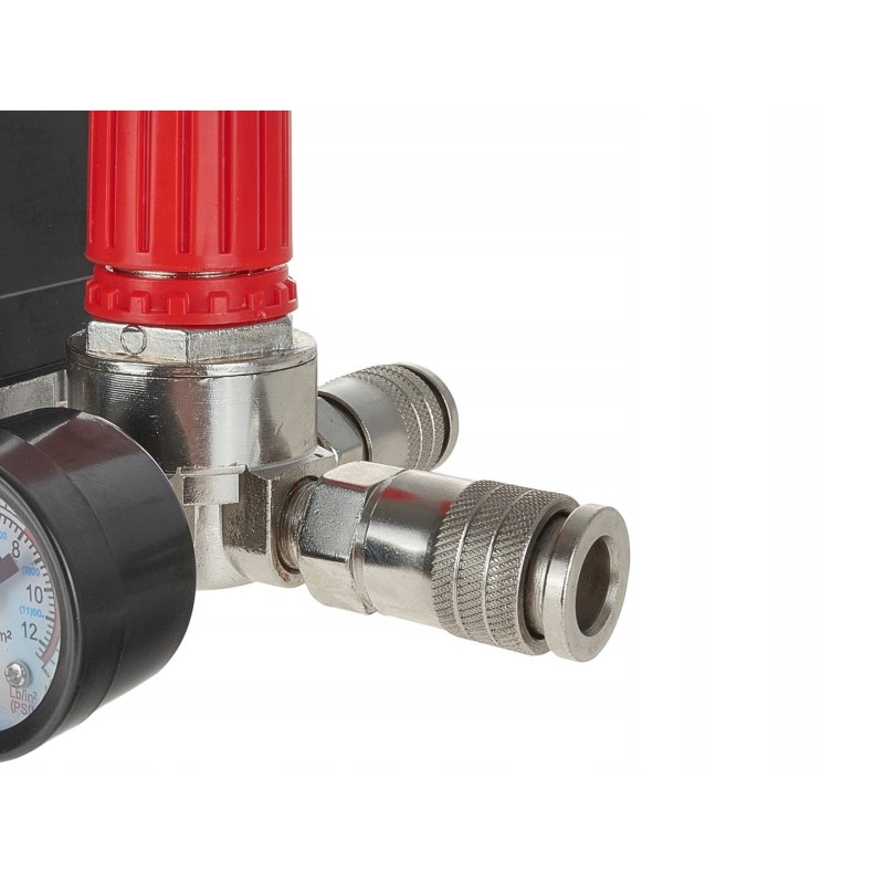 Wyposażony w reduktor, presostat G80318 umożliwia dokładne dostosowanie ciśnienia wyjściowego do wymagań narzędzi pneumatycznych. Dzięki temu użytkownik ma możliwość łatwej regulacji parametrów pracy, co jest niezwykle istotne w wielu zastosowaniach.