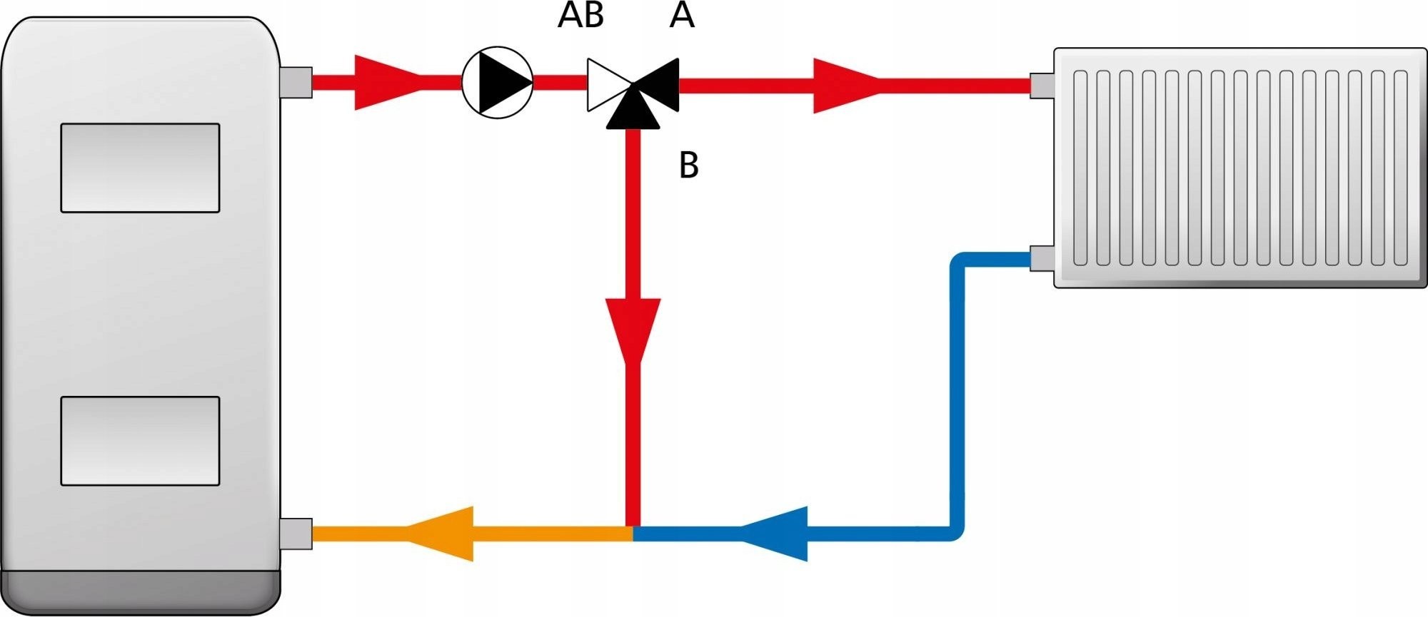- Miesza w odpowiednich proporcjach strumienie cieczy grzewczej.