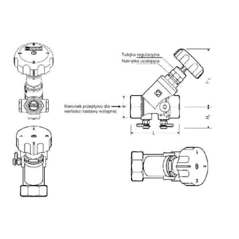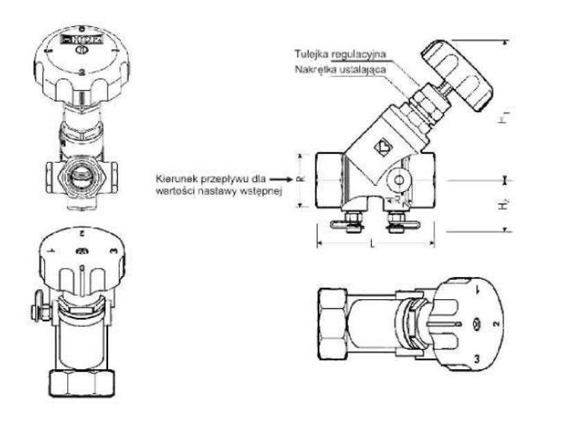 - Przelotowy zawór regulacyjny do instalacji grzewczych i chłodniczych, z zaworami pomiarowymi