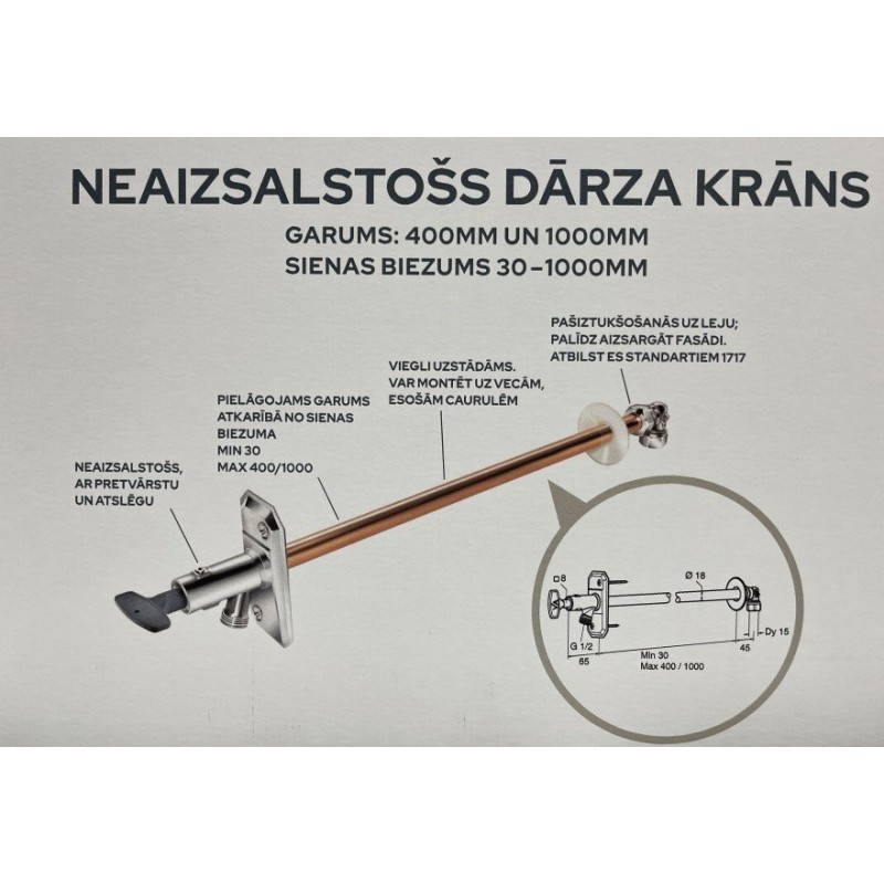SpecyfikacjaKrāns jest przeznaczony do montażu na ścianach o grubości od 30 mm do 400 mm. Można go łatwo dostosować do istniejących rur, a wszystkie prace konserwacyjne można przeprowadzić z zewnątrz. Produkt spełnia normy bezpieczeństwa instalacji wodnych.
