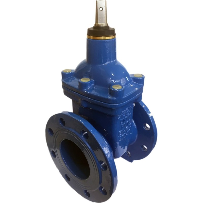 Zasuwa do przesyłu wody pitnej, ścieków komunalnych oczyszczonych i innych nieagresywnych mediów, zabudowa krótka F4. Korpus, pokrywa: żeliwo sferoidalne GGG40, farba epoksydowa 250☐m, trzpień X20Cr13(420), śruby stal A2-70