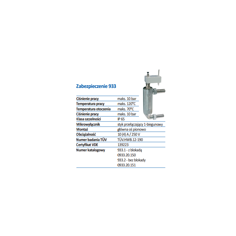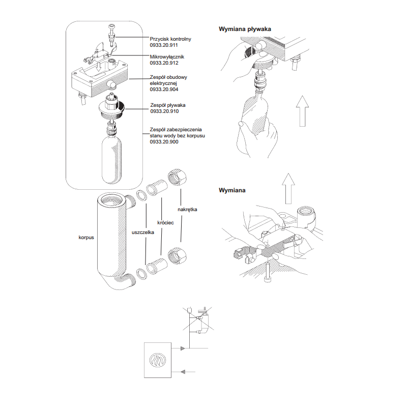 - Zabezpieczenie stanu wody 933 umożliwia kontrolę poziomu wody w miejscu jego montażu