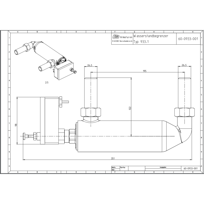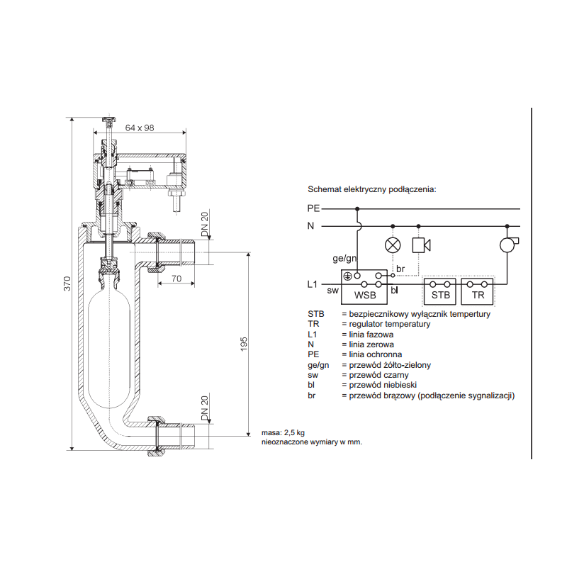 - Zabezpieczenie stanu wody typu 933 powinno być zamontowane równolegle na przewodzie zasilającym, powyżej kotła.