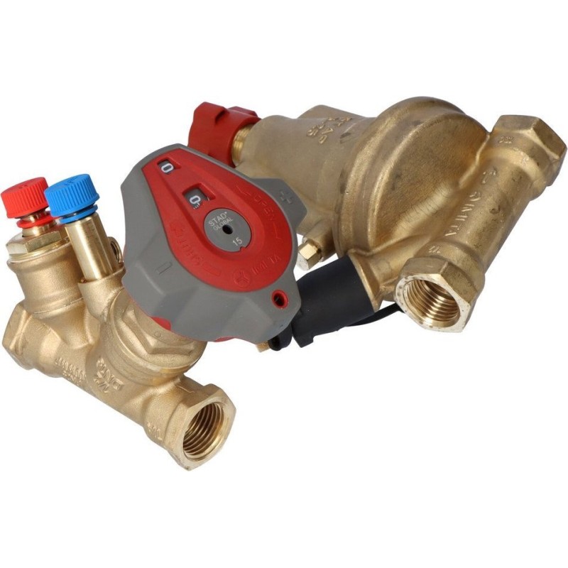 Zestaw STAP/STAD jest zestawem w którego w skład wchodzi zawór równoważący oraz regulator różnicy ciśnień. STAD to precyzyjny zawór równoważący z cyfrowym pokrętłem dla dokładnej nastawy z możliwością pomiaru i wpięcia rurki sygnałowej. Regulator różnicy ciśnień STAP, utrzymuje stałe ciśnienie różnicowe na obiegu. Dzięki zastosowaniu zestawu regulatora różnicy ciśnień i zaworu równoważącego, rozruch instalacji staje się jeszcze łatwiejszy, zmiesza się ryzyko pojawienia hałasu na zaworach regulacyjnych takich jak zawory/ wkładki termostatyczne. Pełne możliwości pomiarowe jak pomiar przepływu, ciśnienia różnicowego, temperatury zapewniają króćce pomiarowe. Dokładność zestawu STAP/STAD oraz kompaktowe rozmiary czynią go szczególnie odpowiednim w użyciu w systemach grzewczych i chłodniczych. Do zestawu dołączona jest 1 m rurka impulsowa wraz z odpowiednimi złączkami. Oba zawory wykonane są z AMETAL®u - stopu odpornego na odcynkowanie, który gwarantuje długą i niezmienną pracę zaworu oraz obniża ryzyko przecieku.