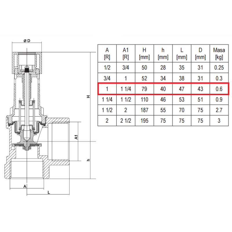 - Zawór jest w stanie odprowadzić całą moc cieplną instalacji grzewczej w postaci pary nasyconej