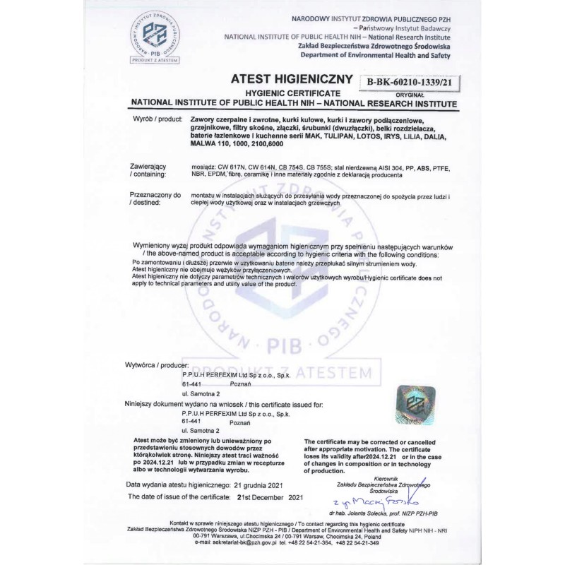 Produkt posiada ATEST PAŃSTWOWEGO ZAKŁADU HIGIENY!