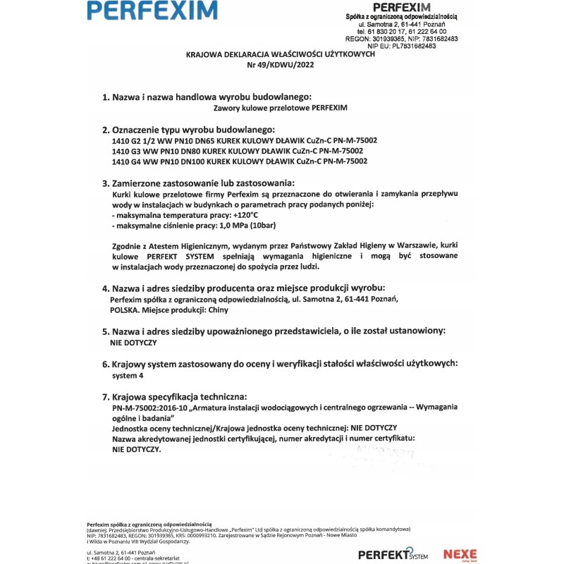 Kategoria Zawory wodne i gazowe Marka Perfexim