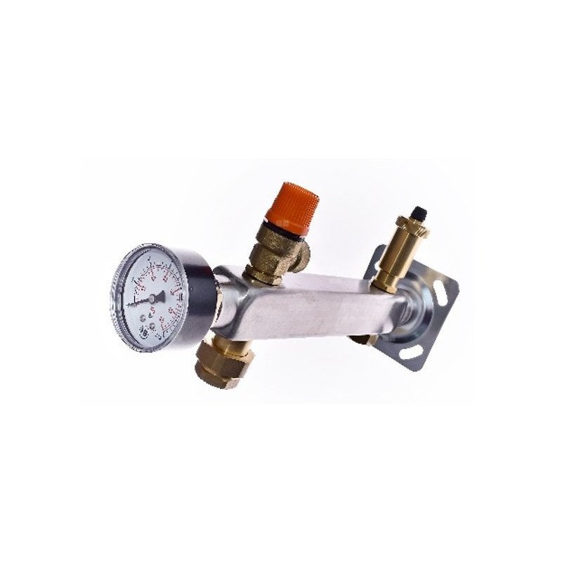 - Wyposażenie: belka INOX, zawór bezpieczeństwa, manometr tarczowy, szybkozłącze, zawór zwrotny, odpowietrznik manualny/automatyczny