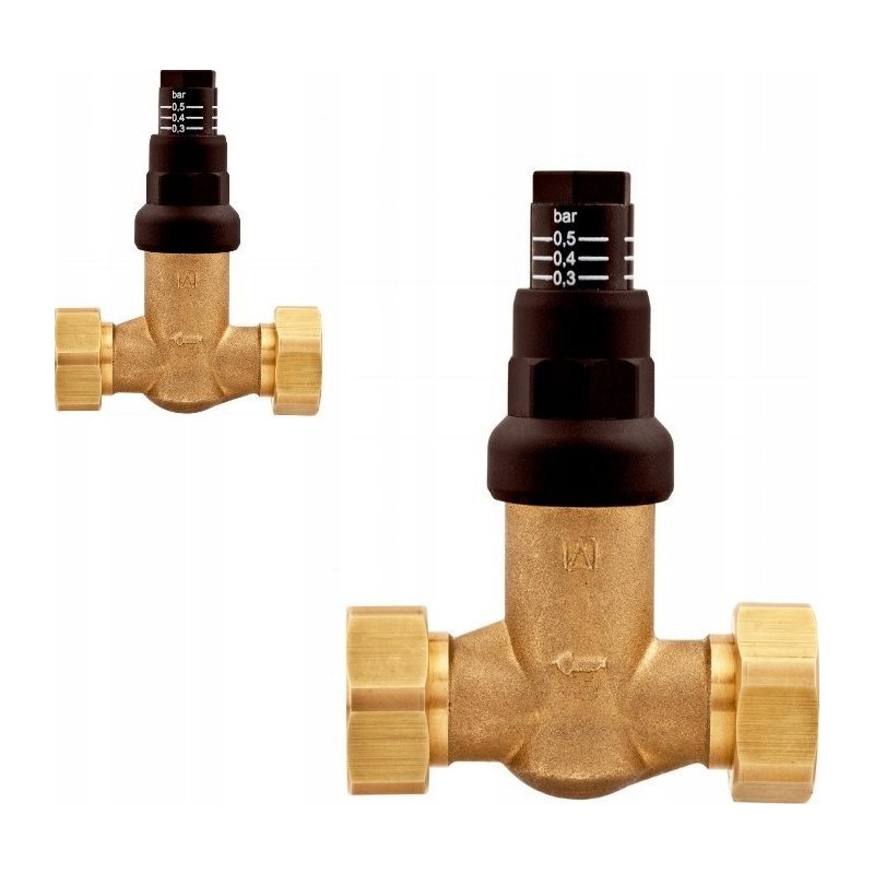 Zawór upustowy różnicy ciśnień DU. Zawór, montowany na bajpasie, przeznaczony jest do utrzymania stałego ciśnienia na pompie cyrkulacyjnej w zamkniętych układach , np. grzewczych zgodnych z PN-EN 12828 oraz redukowania szumów przepływu w instalacji.
