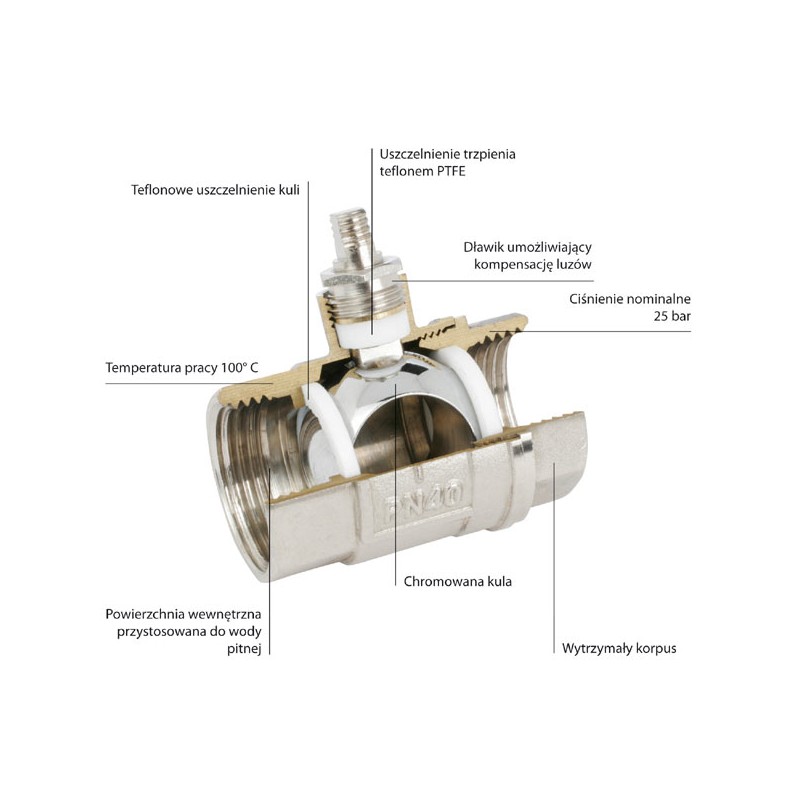 Zawór kulowy z rączką nakrętno - nakrętny 5/4" ( KP4 ) - Ferro