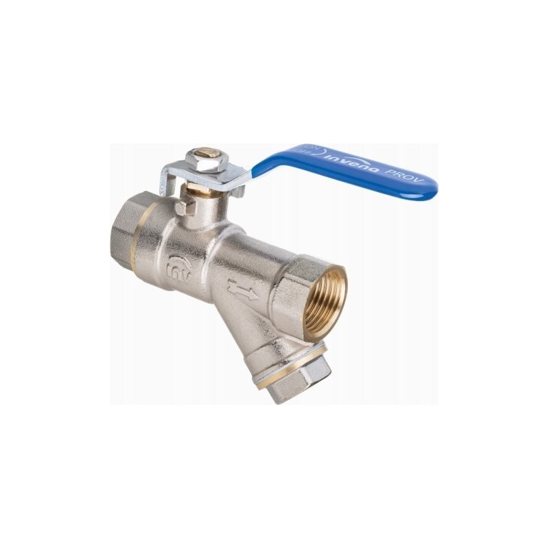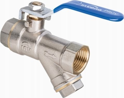 Bardzo wytrzymały, solidny zawór kulowy 1' z filtrem skośnym do usuwania zanieczyszczeń mechanicznych - popularnego producenta Invena . Zawór z dławicą serii Milenium o standardowym przepływie,dźwignią stalową, gwint wew./wew.