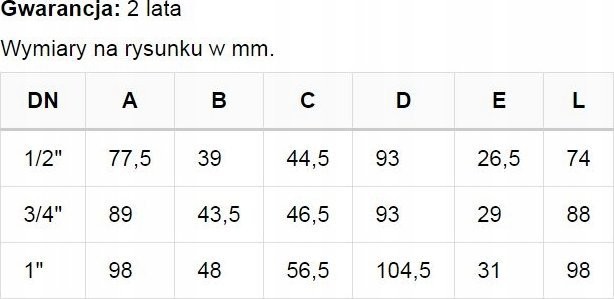 Maksymalna temperatura pracy: 90 °C , PN16