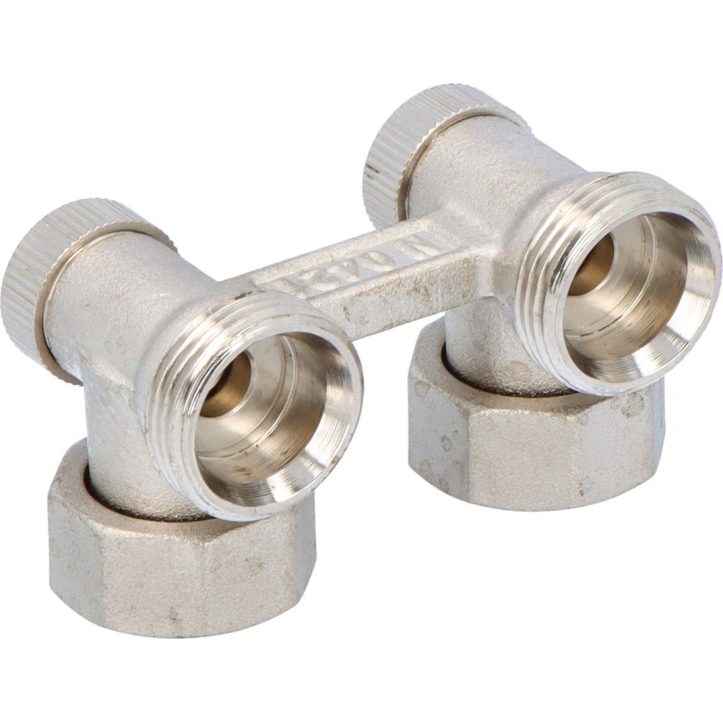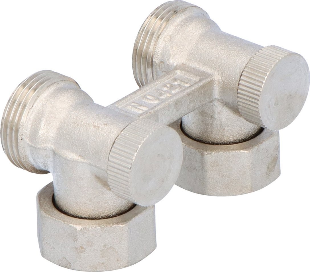 Zespół odcinający FUSION 3 kątowy ze stożkami do grzejników kompaktowych z 2 przyłączkami G 1/2x3/4 niklowany
