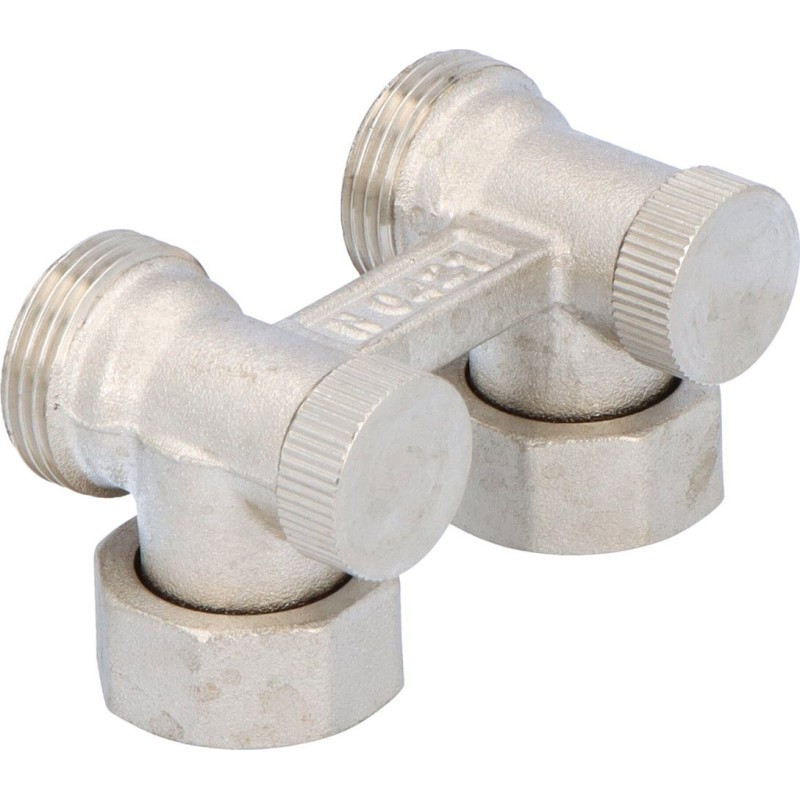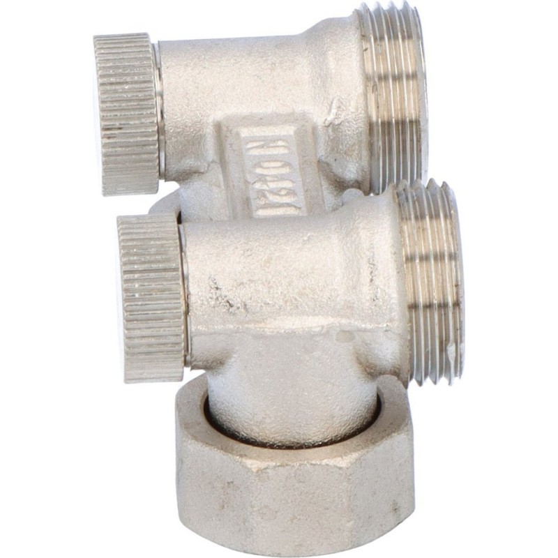 Valvex Zespół odcinający FUSION 3 kątowy ze stożkami do grzejników kompaktowych z 2 przyłączkami G 1/2x3/4 niklowany