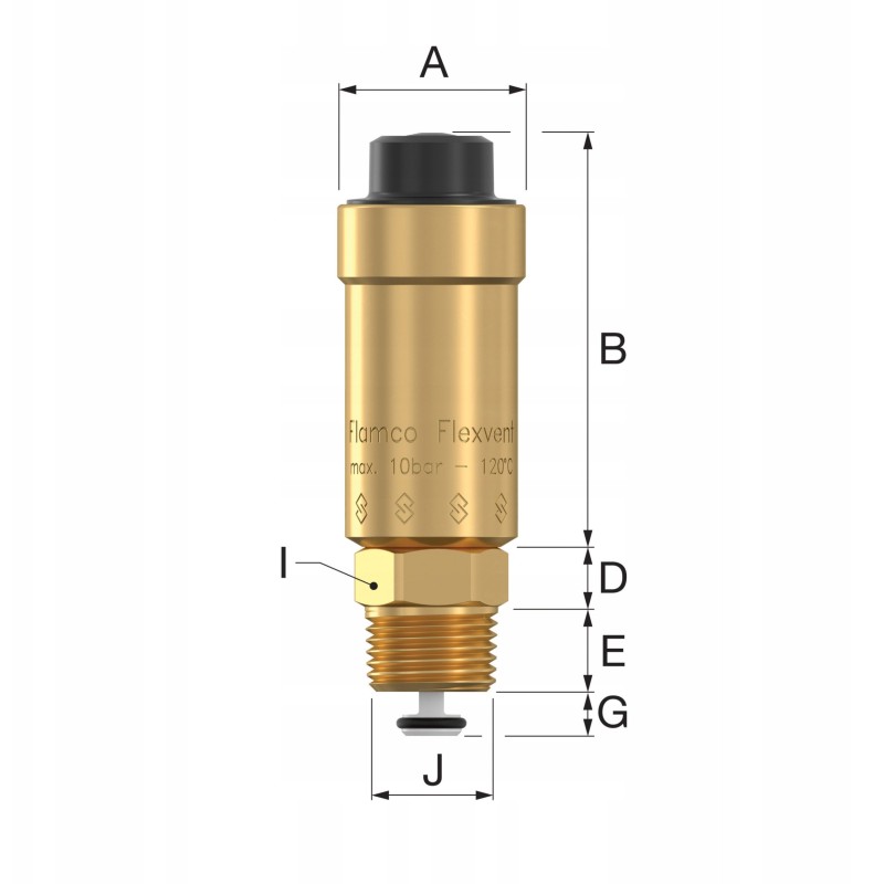 Specyfikacja techniczna odpowietrznika FLAMCO Flexvent 1/2"
