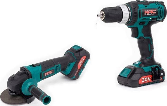 Akumulatorowa wiertarko-wkrętarka NAC CDB-LI-20V oraz szlifierka kątowa NAC AGE-125-LI-20V zasilane napięcięm 20V to niezbędne wyposażenie każdego warsztatu. Będą Twoimi najlepszymi przyjaciółmi zarówno podczas domowych remontów, jak i w profesjonalnych pracach remontowo-budowlanych, pracach serwisowych czy instalacyjnych. Przy pomocy wiertarko-wkrętarki skręcisz wszelkiego rodzaju połączenia śrubowe, na przykład podczas montowania mebli czy majsterkowania w garażu. Wywiercisz także otwory w drewnie, materiałach drewnopodonych, tworzywach sztucznych czy materiałach budowlanych, takich jak pustaki, cegły, płyty gipsowo-kartonowe oraz gazobeton. Dzięki szlifierce kątowej, w zależności od rodzaju zamontowanej tarczy, jesteśmy w stanie obrabiać lub ciąć materiały takie jak: kamień, metal czy beton, a także szlifować i oczyszczać różne powierzchnie, np. metal z rdzy lub farby. Z prezentowanym zestawem narzędzi nie będą Ci straszne prace związane z wykańczaniem mieszkania czy usuwaniem drobnych awarii. W standardowym wyposażeniu zestawu znajdują się: