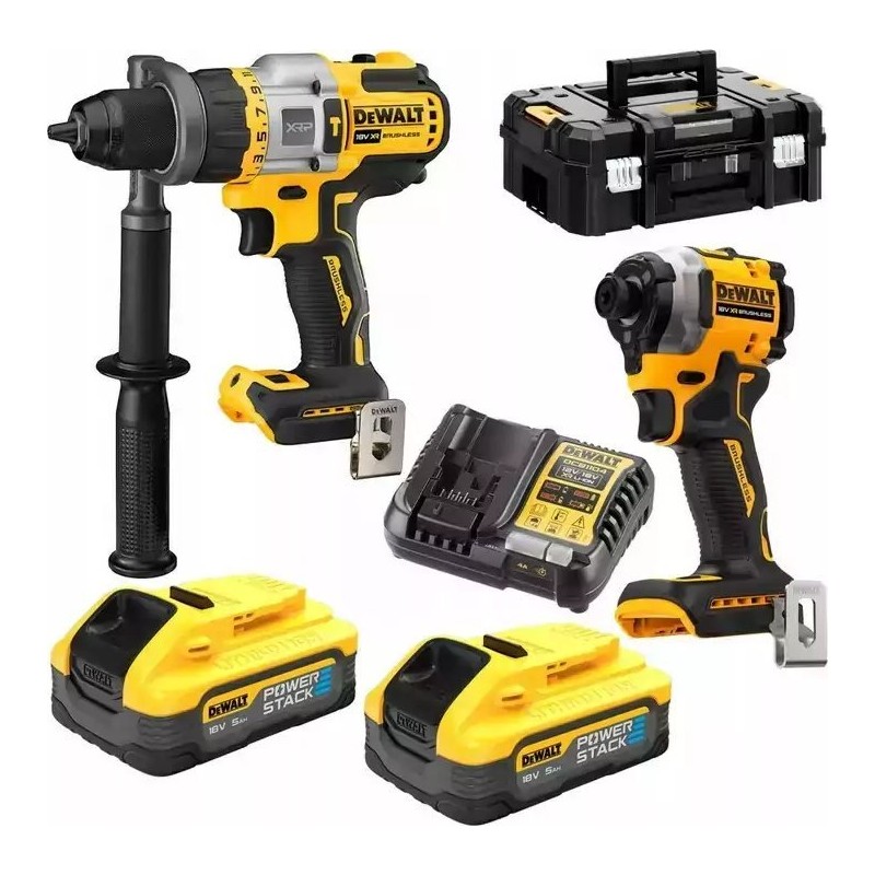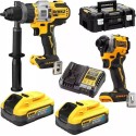 Zestaw elektronarzędzi Dewalt DCK2052H2T - bezszczotkowy komplet wiertarko-wkrętarki DCD999 oraz zakrętarki DCF850 wraz zestawem zasilającym, składającym się z dwóch akumulatorów PowerStack (pojemność 5,0 Ah), wraz z ładowarką i walizką TSTAK. Zestaw Dewalt DCK2052H2T zawiera najpotężniejsza obecnie wiertarkę producenta, model DCD999 oraz jedną z najbardziej popularnych i chwalonych zakrętarek udarowych, model DCF850.