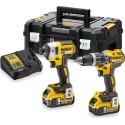 Zestaw narzędzi akumulatorowych DCK266P2T DeWALT bazuje na bardzo wszechstronnej, dwubiegowej wiertarko-wkrętarce udarowej z ulepszonym oświetleniem LED, dopasowaną rękojeścią i płynną regulacją obrotów. Drugim składnikiem setu jest profesjonalna zakrętarka udarowa z pierścieniem oświetlającym miejsce pracy bez rzucania cienia, wysokim momentem obrotowym oraz z prędkością obrotową na trzech poziomach. Oba urządzenia posiadają silniki bezszczotkowe i ergonomiczne rękojeści z powłoką antypoślizgową, a także metalowe zaczepy do pasków. Combo zasilane jest akumulatorami 18V Li-Ion z linii XR, a ich pojemność to 5.0Ah. Całość wraz z ładowarką wielonapięciową mieści się w walizce systemowej z linii Tough System. Jest to grupa skrzyń składających się na mobilny warsztat z solidnym wózkiem i kuframi systemowymi w trzech rozmiarach. To profesjonalny set dla firm wyspecjalizowanych w montażach lub fachowców ceniących najwyższą jakość, komfort i ergonomię pracy.