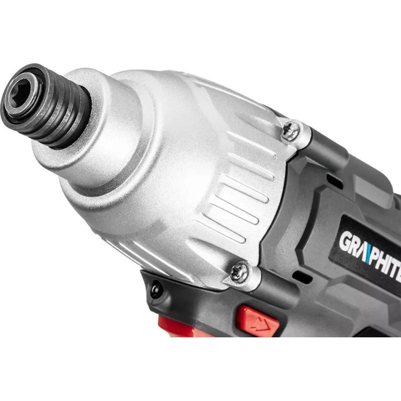 Zakrętarka od marki GRAPHITE, wyróżnia się wysokim momentem obrotowym 180 Nm oraz prędkością do 2200 obrotów na minutę. Posiada uniwersalny uchwyt narzędziowy 6,35 mm (1/4”), który umożliwia wygodną pracę z szerokim asortymentem końcówek wkrętakowych oraz bitów. Dioda LED doświetla miejsce pracy, a możliwość szybkiego zatrzymania wrzeciona za pomocą hamulca silnika, wpływa na bezpieczeństwo użytkowników.