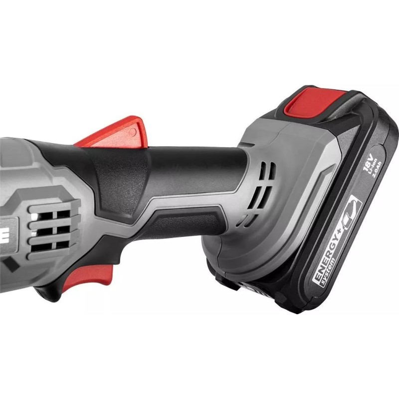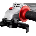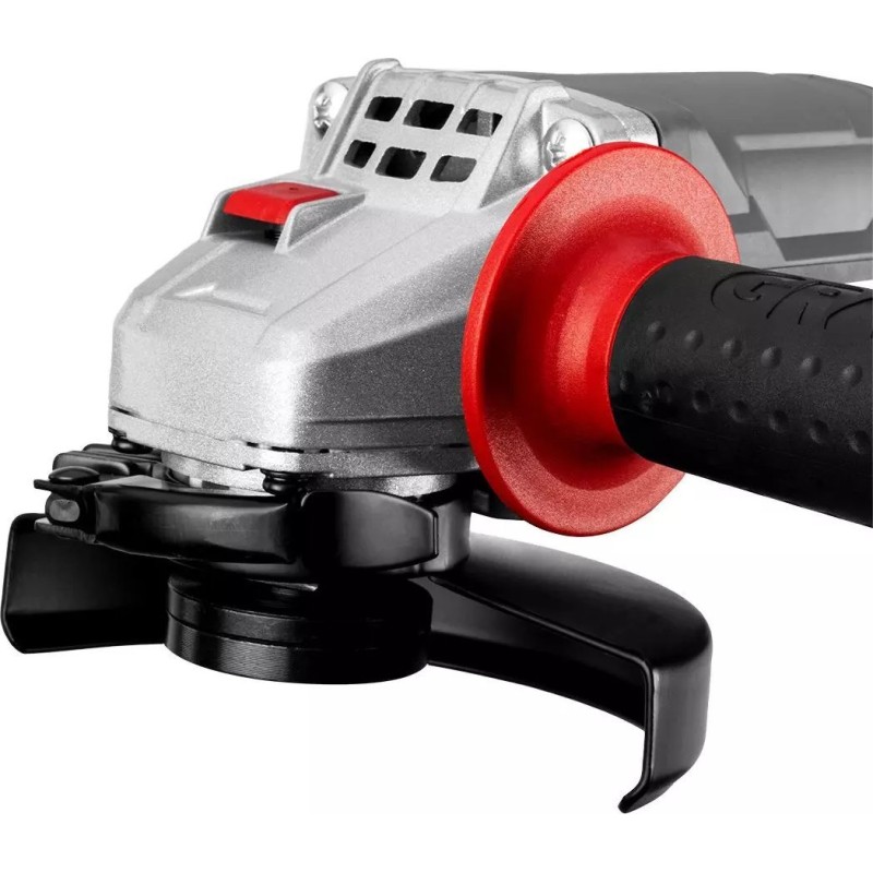 Szlifierka kątowa tego typu charakteryzuje się wygodną konstrukcją – dwupozycyjną rękojeścią boczną oraz antypoślizgowymi uchwytami, zapewniającymi odpowiednią stabilizację w dłoniach. Korpus umożliwia beznarzędziowy montaż i regulację osłony tarczy.