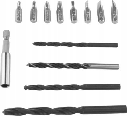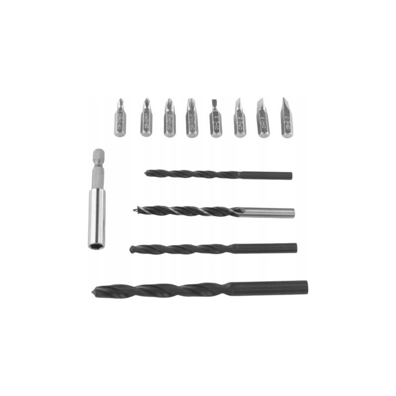 - Zawartość zestawu: akumulator, klucz udarowy, ładowarka, wiertarka, wkrętarka, zakrętarka