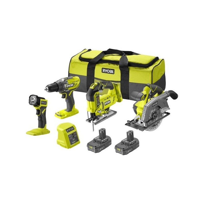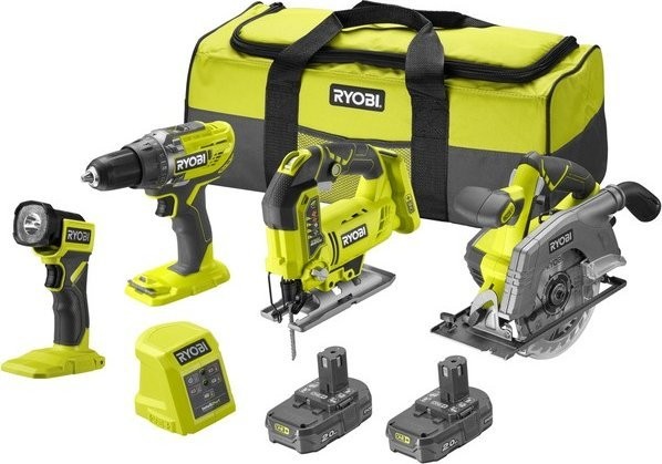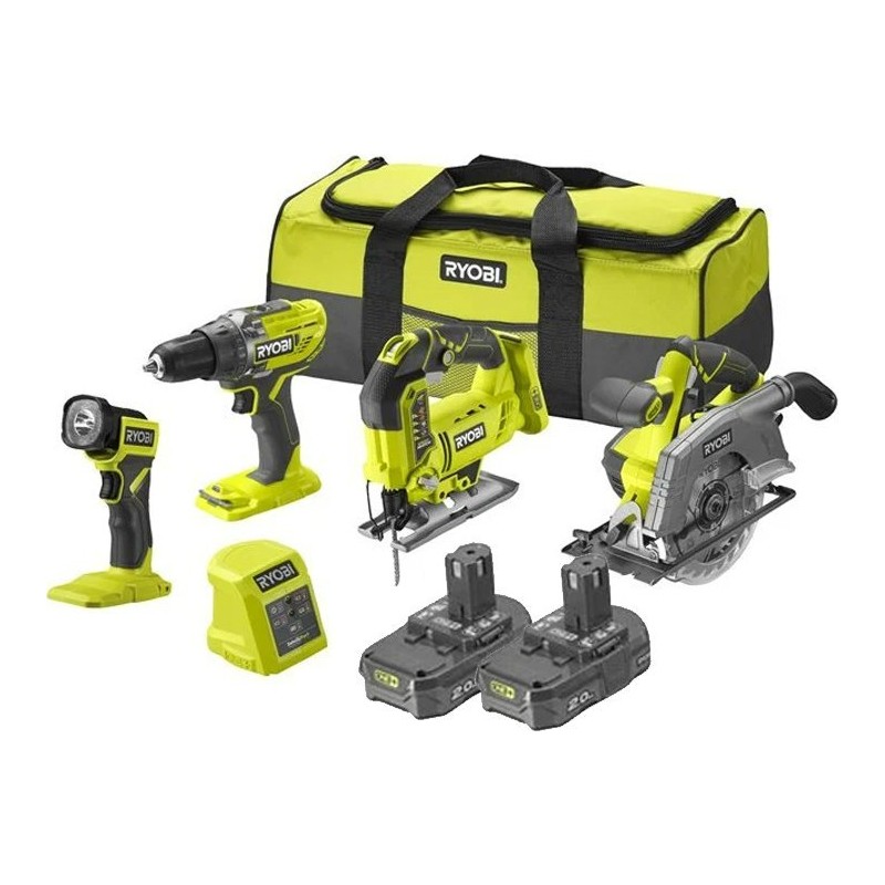 Zestaw elektronarzędzi Ryobi RCK184D-220S 4 elektronarzędzi 18V ONE+ w zestawie z dwoma akumulatorami 2.0 ładowarką i torbą Ryob