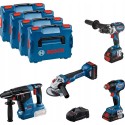 Bosch Professional 18V System Combo Kit: GSR 18V-110 C + GDX 18V-210 C + GWS 18V-10 + GBH 18V-24 C (incl. 2x ProCORE 5 batteries