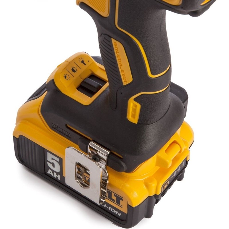 - Akumulator XR 5.0Ah zapewnia długi czas pracy na jednym naładowaniu i jest kompatybilny z innymi elektronarzędziami DEWALT o tym samym napięciu