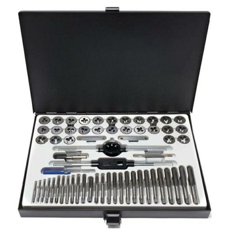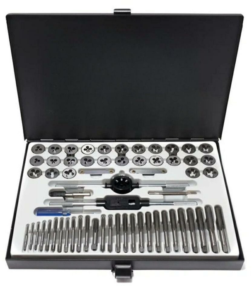 Zestawy gwintowników i narzynek do szybkiego i wydajnego nacinania i przywracania gwintów w częściach metalowych. Rozmiary: M3x0.5,4x0.7,5x0.8,6x1,7x1,8x1.25,9x1.25,10x1/1.5,M12x1.75; 4-40,6,8-32,10-36,12-24;1/4,5/16,3/8,7/16,1/2,1/8 uchwyt do gwintowników plashkoderzhatel 1 wkrętak 2 sprawdziany do gwintów 1 uchwyt T Zestaw zawiera gwintowniki o różnych rozmiarach i narzynki, które służą do nacinania gwintów. Gwintowniki i narzynki mają różne profile gwintów, które odpowiadają różnym rozmiarom i typom gwintów. Zestaw gwintowników i narzynek może być używany do nacinania gwintów zewnętrznych na częściach metalowych, a także gwintów wewnętrznych w otworach. Może być przydatny do naprawy i wytwarzania różnych produktów metalowych, takich jak śruby, nakrętki, wkręty itp. Dostarczane w metalowej walizce do wygodnego przechowywania i transportu.