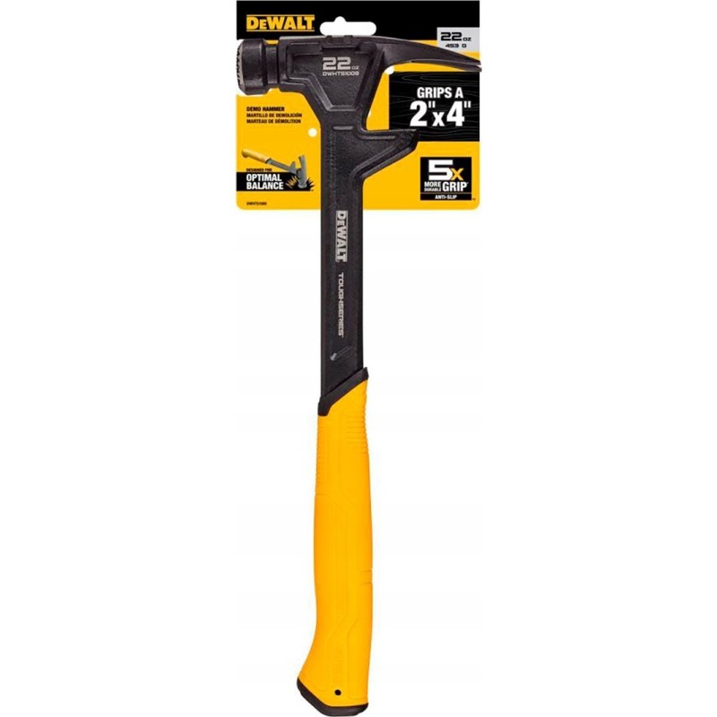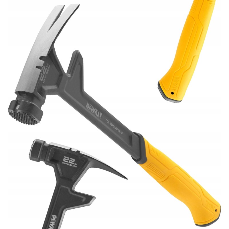 Wykonaj ekstremalne prace rozbiórkowe w budynkach mieszkalnych i komercyjnych dzięki młotkowi DeWALT TOUGHSERIES™. Ten wszechstronny młotek posiada nadwyrazny obuch umożliwiający rozbicie płyt gipsowo-kartonowych, wyprofilowane pazury do wyjmowania gwoździ. Innowacyjna konstrukcja posiada uchwyt ułatwiający montaż profili drewnianych, takich jak belki 2x4" czy ściany działowe. Antypoślizgowy uchwyt sprawia, że młotek pewnie leży w dłoni. Doskonale nadaje się do podejmowania prac rozbiórkowych niezależnie od warunków na placu budowy.