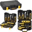 Zestaw narzędzi jest przechowywany w praktycznej walizce, która zapewnia porządek oraz łatwy dostęp do narzędzi. Walizka jest wyposażona w wygodny uchwyt, co ułatwia transport i sprawia, że możesz zabrać swoje narzędzia wszędzie tam, gdzie ich potrzebujesz.
