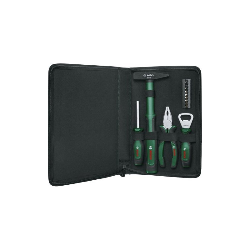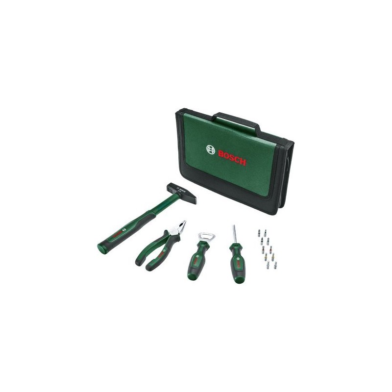 14-częściowy zestaw narzędzi ręcznych Bosch z łatwym rozruchem zawiera wszystkie narzędzia niezbędne do samodzielnych napraw i konserwacji, montażu mebli lub podstawowej konstrukcji. Zestaw, wygodnie zapakowany w przenośną, materiałową torbę na zamek błyskawiczny, zawiera szczypce uniwersalne, młotek inżynierski o masie 300 g, otwieracz do butelek i uniwersalny śrubokręt, a także 10 bitów. Każdy produkt jest solidnie wykonany z materiałów wysokiej jakości i ergonomicznie zaprojektowany, aby zapewnić długą żywotność, a także optymalny komfort i kontrolę.