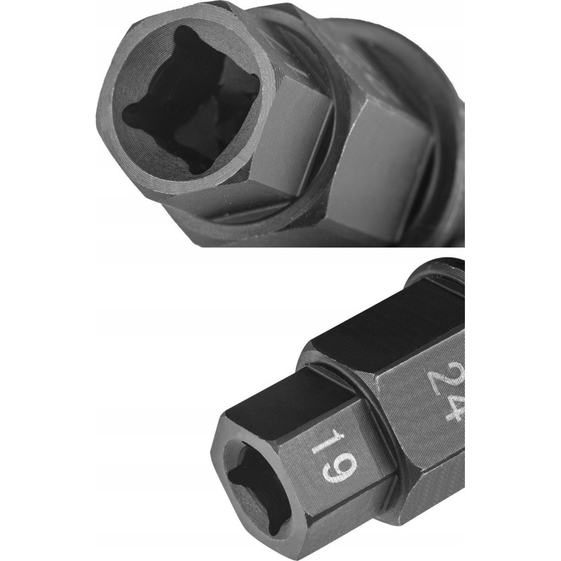 - 5x nasadki torx ¼” (rozmiary: E4, E5, E6, E7, E8)