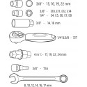 - 2x nasadka do świec 3/8” (rozmiary: 14, 16 mm)